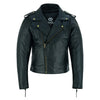 Made from 100% lambskin leather, this ladies fashion jacket is perfect for everyday wear. It’s lightweight and easy to put on, with double front closure (both zippered and buttoned). The fabric ribbed collar will help keep you warm during the cold season. There are 4 snap button pockets at 2 zippered chest pockets along with one internal pocket which can be zippered shut. The full waist belt can be adjusted to your preferred fitting. This jackets offers a edgy vintage look which can be worn all year round.