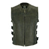 Mens Dirty Grey Leather Waistcoat Vest with Snap Button