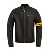 Classic Cafe Racer Black Biker Leather Jacket with Brown Stripes