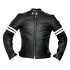 Fight Club 2 Red Striped Cafe Racer Style Retro Leather Jacket