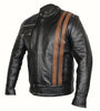 Men's Gallanto Distressed Antique Leather Cafe Racer Jacket – Genuine Motorcycle Biker Coat with Yellow Racing Stripes -