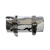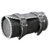 Blue camo print tool bag is a great new accessory to your motorcycle, made from a leather base, the fabric camouflage is then glued onto the base and stitched used heavy duty thread. A good size to hold items and easily attached with two buckles at the bag. With chrome plated brass buckles at studs around the sides.