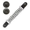 Double Chain 7 Inches long Vest Extender with chrome snaps - Black leather and snap vest extender with silver chain. Attaches to your vest snaps to make for a better fit.