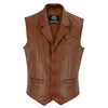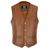 A top quality full grain leather vest with the industrial style spring loaded hooks at the front. This is an all in one mens biker vest with the classic braided trim around the edges and adjustable side laces. The side laces allow you room to adjust the fit according to the layering, so simply tighten when wearing a t-shirt underneath and loosen when layering up. The vest comes with 3 silver hooks, 2 open waist pockets and an internal pocket to store your valuables such as keys and wallet.