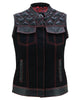 Get ready to rock the biker chic look with our Ladies Black Denim Motorcycle Vest with Hearts and Red Stitching!
